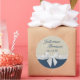 Pretty white bow, ribbon and burlap printed design favour sticker with couple's names and wedding date. Change background colour and text colours as preferred.