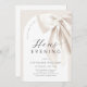 White Bow Arch Hens Evening Invitation. This sophisticated invitation features a classic ivory white bow and romantic handwritten script, perfect for a trendy and whimsical bridal shower. The elegant design with an ivory satin ribbon and coquette charm adds a touch of class to your event. Customise the text to match your event's details and create a timeless invitation for your special day.