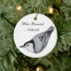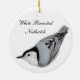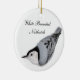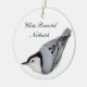 Original fine art painting of a White Breasted Nuthatch by artist Carolyn McFann printed on a quality holiday ornament for wild bird lovers.