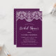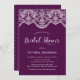 Invite guests to your event with this customisable bridal shower invitation. It features an elegant brocade lace garland on a purple background. Personalise by adding your details. This lace bridal shower invitation is perfect for any event theme or season.