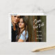 This modern Save the Date Wedding postcard showcases your own photograph on the front. White brush script is located at the top right, with your important date and names at the lower right. The back of the postcard has multiple text fields for you to customise. If any of the fields are not needed, just blank out the text. Easy to customise!