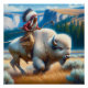 Beautiful Whimsical White Buffalo Bison landscape Scene With Indian riding buffalo at Yellowstone National Park Square Poster Print, frame this and display this beautiful poster print anywhere in a home or office.