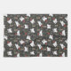 Illustrated white rabbits, tulips, red flowers, and leaves on a grey background for spring and Easter.