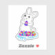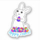 * Cute illustrations of white bunny with colorful Easter eggs.