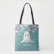 Cute bag with a white bunny, flowers, and petals floating in the air.