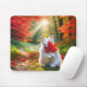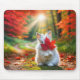 White Bunny Hiding Behind a Red Maple Leaf Mouse Mat