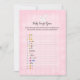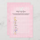 A white bunny rabbit above game title with baby girl pink diamond argyle background. Templates created for you. This is a Baby Emoji Pictures baby shower game.