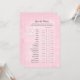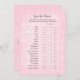 A white bunny rabbit above game title with baby girl pink diamond argyle background. Templates created for you. This is a Guess The Features baby shower game.