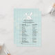 A white bunny rabbit above game title with baby aqua blue, diamond argyle background. Templates created for you. This is a Baby Candy baby shower game.