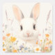 White Bunny with Pink Nose in Spring Wildflower Square Sticker
