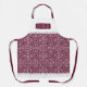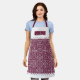 White and burgundy red damask pattern with white scalloped borders apron. On the upper and the bottom parts of the apron there are white bands with scalloped edges. You can personalise it with your name.
