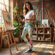 White Butterflies Paint Drips and Brush Strokes Leggings