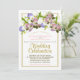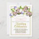 This floral invitation is elegant, stylish & chic. Combining modern design themes with formal & traditional wording it is appropriate for weddings of any variety. The design features an arched cluster of flowers at the top including pink roses, white orchids, purple hydrangea, and white calla lilies, with a beautiful gold border around the outside.