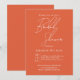 Modern White script calligraphy Verona sunset orange fall Bridal shower Invitation. Make a stylish statement with this Bridal Shower Invitation, specifically designed to announce an upcoming bridal shower gathering. The invitation features a contrast, with the phrase "Bridal Shower" beautifully presented in white script calligraphy, displayed prominently against a warm Verona sunset orange background. The back of the invitation complements the front with a solid orangecolor, maintaining a visually cohesive and elegant design that is sure to impress your guests.