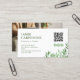 White business card with green as the accent colour and a calm look for any profession with your social media information in the form of your personal QR code and, on the back, a photo. Greenery business card with calm sprigs of greenery in sage green, cute social media icons, and your QR code.