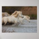 White Camargue Horses Running in Water Poster