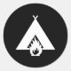 White Campfire and Tent Symbol for Dark Background Classic Round Sticker