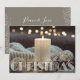 Beautiful white candle, ornaments and blanket throw on the front of this flat holiday greeting card with Merry Christmas in chic lettering and your personalized greeting on the back. Select Matte for heaviest paper and high definition for best print quality.