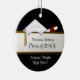 Graduation ornament trinket features a white cap and diploma with customisable text and year. Cassic round design suitable for male or female, high school or college.