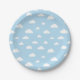 White Cartoon Clouds on Blue Background Pattern Paper Plate