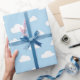 White Cartoon Clouds on Blue Background Pattern Wrapping Paper