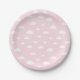 White Cartoon Clouds on Pink Background Pattern Paper Plate