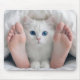 White Cat and Human Feet Under a Duvet Mouse Mat