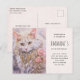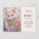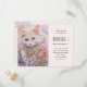 Birthday party invitation postcard with a lovely illustration. A long haired white cat looking regal and elegant. Surrounded by pink flowers, gold and diamond jewellery.