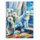 White Cat in Window sill Looking out at the Ocean Notebook