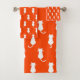 White Cat Isolated on Orange Polka Dot Pattern Bath Towel Set