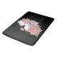 A profile of a white cat with pink, peach and lavender coloured roses in backdrop of black