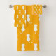 White Cat Polka Dot Pattern Isolated on Tangerine Bath Towel Set
