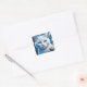 White Cat with Bright Blue Eyes Floral Square Sticker