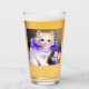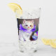 Glass Tumbler featuring a gorgeous white kitten! A fluffy kitten wears a purple flower collar. A blue bowl of white and purple flowers sits to the right. A marvellous gift for cat lovers and Victorian art enthusiasts!