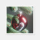 A red Christmas ornament hangs delicately from a green fir branch reflecting a white cat's paw