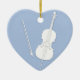 White Cello & Bow Light Blue Custom Heart Ceramic Tree Decoration