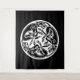 Tapestry with white Celtic hound dogs in the round on a black background. Customisable.