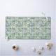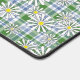 White chamomile flowers on a green blue chequered desk mat