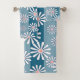 White chamomile flowers on striped blue background bath towel set