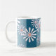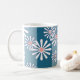 White chamomile flowers on striped blue background coffee mug