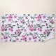 White cherry blossom branches painted with watercolors and ink on a pink background