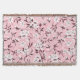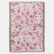 White cherry blossom branches painted with watercolors and ink on a pink background