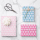 White cherry blossoms on light pink, dark pink, and sky blue.