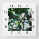 White Cherry Blossoms Green Leaves Square Wall Clock