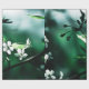 Closeup view of white cherry blossoms inside a cherry tree. Play of green and white colours, bright light and dark shadows. - Blossoms are scattered by the wind and the wind cares nothing, but the blossoms of the heart no wind can touch. (Yoshida Kenko)
