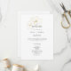 This chic and stylish wedding program features a contemporary set of fonts and script elements in black, alongside delicate floral outlines in faux gold against a crisp white background.