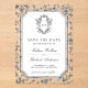 Elegant wedding save the date featuring a beautiful victorian crest with intricate chinoiserie pattern. Simply add your event details on this easy-to-use template to make it a one-of-a-kind save the date card.