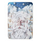 A mystical bearded figure is composed of intricately cut paper, appearing amidst a snowy village set against mountainous terrain. The serene face is surrounded by detailed elements of winter, including snowflakes and frosted rooftops. Digital Art