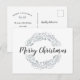 Christmas card in white with Christmas berries decorative wreath and"Merry Christmas" in hand letter fonts. Optional wording on the back with return address for easy mailing.