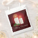 Destei's original illustration of two candles together with a Common Holly / Christmas Holly plant. The background colour is red. There are also two personalizable text areas.